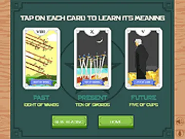 3 कार्ड टैरो रीडिंग, टैरो कार्ड्स द्वारा भविष्यवाणी का एक दिलचस्प खेल है। क्या आपने कभी सोचा है कि आपका अतीत, वर्तमान और भविष्य कैसा दिखता है? जादुई टैरो कार्ड्स की मदद से, यह आपको प्रकट होगा जैसे ही आप टैरो कार्ड रीडिंग के अनुभव से ज्ञान प्राप्त करेंगे। कार्डों को शफ़ल करें और अपनी पसंद के तीन कार्ड चुनें। अपने अतीत, वर्तमान और भविष्य की स्थिति के बारे में आश्चर्यजनक खुलासा पाएं। इस मज़ेदार टैरो कार्ड गेम का आनंद यहां Y8.com पर लें!