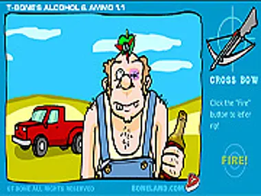 We all know that alcohol can affect your aim, so take care when shooting the apple on his head with different weapons.