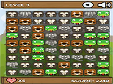 इस आसान और प्यारे पहेली गेम में मस्ती में शामिल हों। एक ही जानवर के दो या उससे ज़्यादा को मिलाकर साफ़ करें। सावधान रहें, किसी अकेले जानवर पर क्लिक न करें, नहीं तो एक ज़िंदगी गँवानी पड़ेगी। आइए देखते हैं आप कितनी दूर तक पहुँच पाते हैं। चलो धमाल मचाते हैं!!