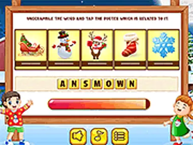 This is an interesting photo word puzzle game with a Christmas theme. In this game, you will find some scrambled letters and photos. First, unscramble the letters and find the name of the item and tap the same image. Clear all the puzzles in the given time and complete the levels. Play lot more educational games only on y8.com