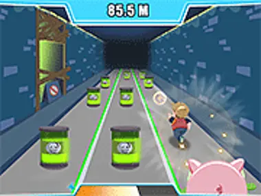 Help this boy to go as far as possible in the sewers to escape the pig!