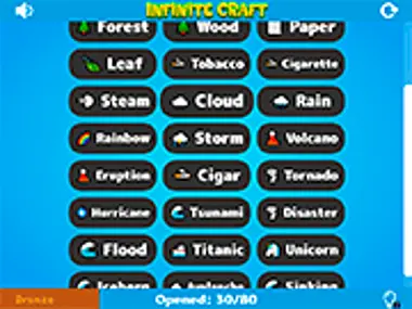Infinite Craft एक मजेदार सिमुलेटर गेम है जहाँ आपको नए तत्व बनाने हैं: आग, पृथ्वी, जल और वायु। नए तत्व बनाने और गेम को पूरा करने के लिए तत्वों को संयोजित करने का प्रयास करें। Y8 पर Infinite Craft गेम खेलें और सभी तत्वों को अनलॉक करने का प्रयास करें। मजे करें।