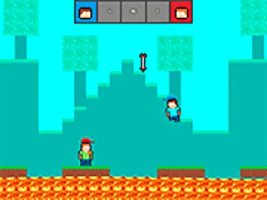 Pixel Battle Upward दो खिलाड़ियों के लिए एक मजेदार 2D बैटल गेम है जहाँ आपको अपने दोस्त को लावा में धकेलना है और राउंड जीतना है। तीरों से बचने और जीवित रहने के लिए प्लेटफॉर्म पर कूदें। Y8 पर Pixel Battle Upward गेम खेलें और इस गेम में एक नए चैंपियन बनें। मज़े करें।