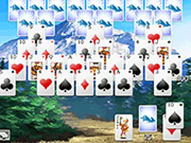 Play a Tripeaks Solitaire game on Snowy Peaks. Remove cards that are 1 higher or 1 lower in value then the open card.