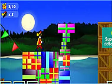 Collect 10 gifts to pass to the next level. Try landing on your feet when you jump, or you will lose a life.